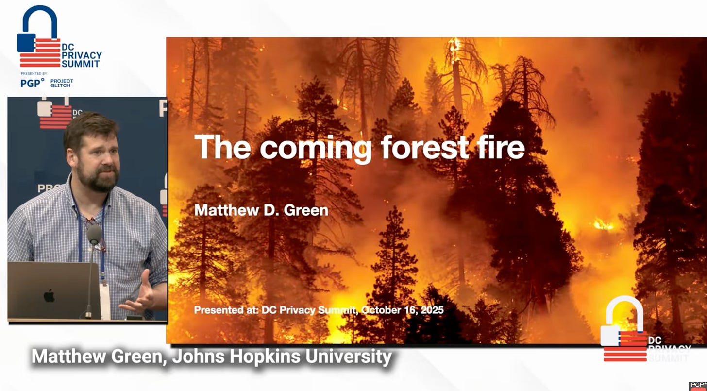 “Things are going to get really, really bad, and they are going to do this in a hurry,” Johns Hopkins computer science professor Matthew Green warned during his keynote talk. Green, who is renowned for his work in cryptography and his insights on data privacy, calls what’s about to happen a privacy forest fire.
